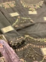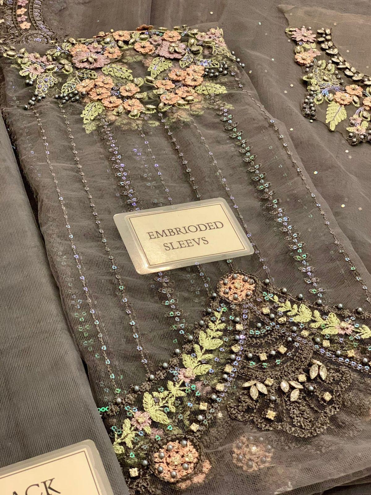 Step into timeless elegance with this luxury unstitched formal ensemble, crafted on premium net and silk fabrics with exquisite handcrafted detailing. The outfit features a fully heavy embroidered net front body enhanced with intricate adda work, paired with a fully embroidered net back body for a rich and graceful look.