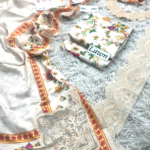 The highlight of this outfit is the luxurious 100/100 lawn voile dupatta, adorned with four-side embroidery and elegant corner motifs that enhance the overall appeal. To further elevate the design, the suit includes heavy embroidered organza patches that add a rich, premium finish and create a graceful statement.