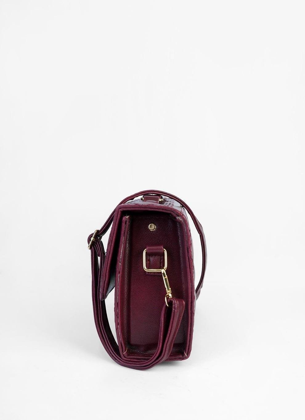 Women’s PU Leather Embroidered Shoulder Bag (Maroon)
